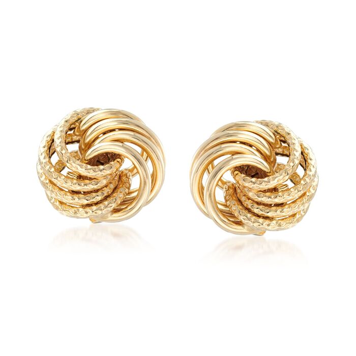 Italian 14kt Yellow Gold Textured and Polished Swirl Stud Earrings