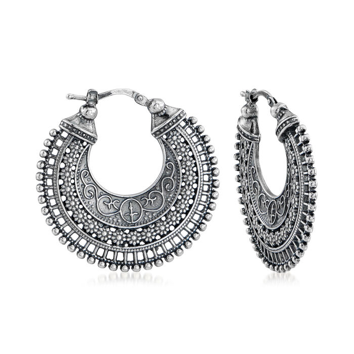 Italian Embellished Hoop Earrings in Sterling Silver.